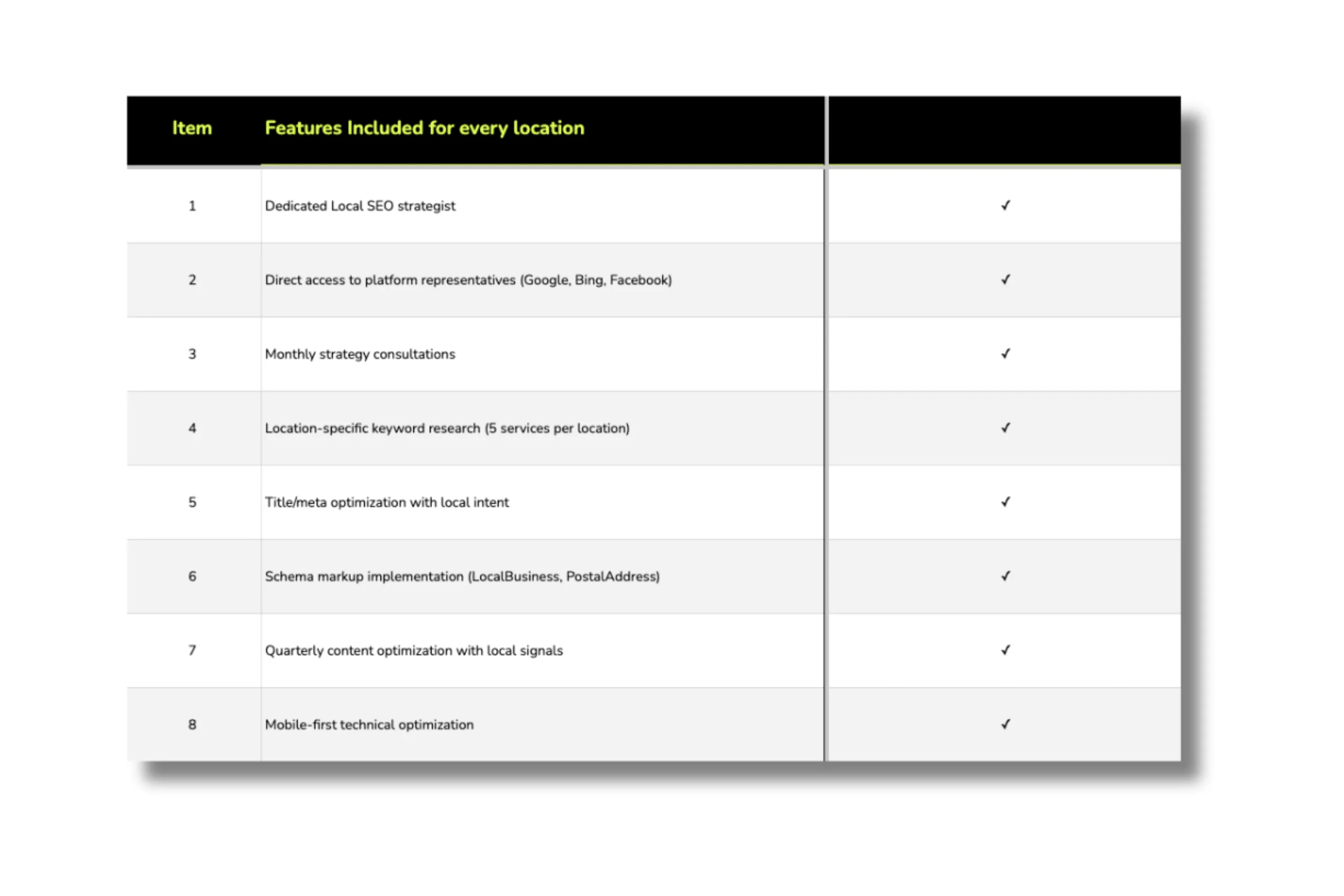 The result? A focused action plan that leverages current search algorithms and local ranking factors to boost your visibility where it counts most - in your community.